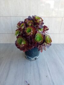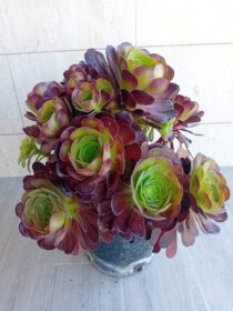 Muito usada para fins ornamentais, o aeonium é uma suculenta de pequeno porte bastante resistente, que cresce rapidamente. Suas folhas dispõem-se em rosetas, formando pontas que lembram um cata-vento.