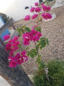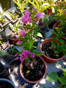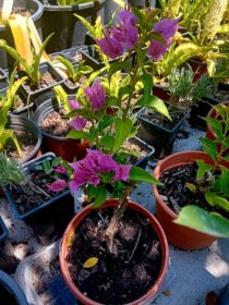 Buganvilia em vaso de 13cms de diametro. As trepadeiras são sempre uma mais-valia pois ocupam o espaço na vertical “aumentando a área verde no terraço”. Neste grupo incluímos a buganvilia, que nesta época estão mais floridas que nunca nos jardins. Fique com a ficha de cultivo desta flor e plante-a com sucesso! Ficha de cultivo Nome científico: Boungainvillea sp Ciclo de vida: Arbusto trepadeira de folha persistente (em locais muito frios pode perder a folha no inverno). Altura: Até 3 m. Deve ser podada anualmente após a floração. Época de floração: Primavera e verão; branca, amarela, fúchsia, rosa, violeta, encarnado. Época de plantação: Qualquer altura do ano Local de cultivo aconselhado: Varandas e terraços com sol pelo menos 4 a 5 horas por dia. Resiste a zonas muito quentes e a ventos do mar. Substrato e fertilização: Utilizar um substrato para plantas com flor, fertilizar na primavera e no verão com húmus ou um adubo orgânico. Tipo de vaso/floreira: É necessário um vaso ou floreira grande, pesado e com pelo menos 40-50 cm de altura para não se desequilibrar com o vento. Deve tutorá-lo e conduzi-lo anualmente na parede, pérgola ou estrutura de apoio. Pode ser utilizada como revestimento de floreiras e em cestos suspensos. Sugestões de plantação: Normalmente planto as trepadeiras sozinhas, pois enchem bastante o vaso.