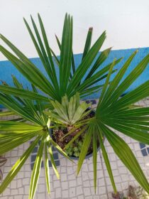 Palmeira moinho de vento Trachycarpus fortunei com cerca de 50cms de altura em vaso de 27cms de diametro.