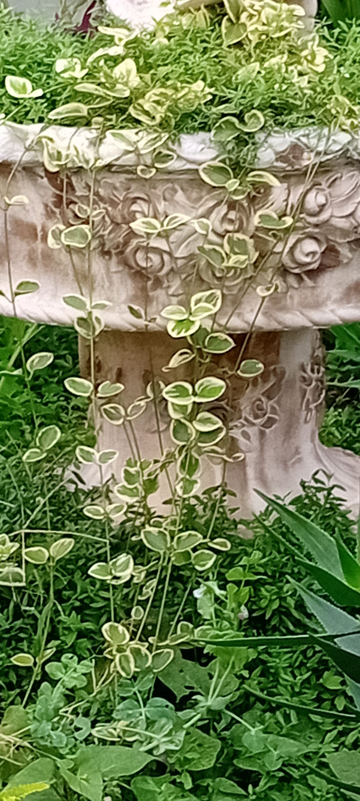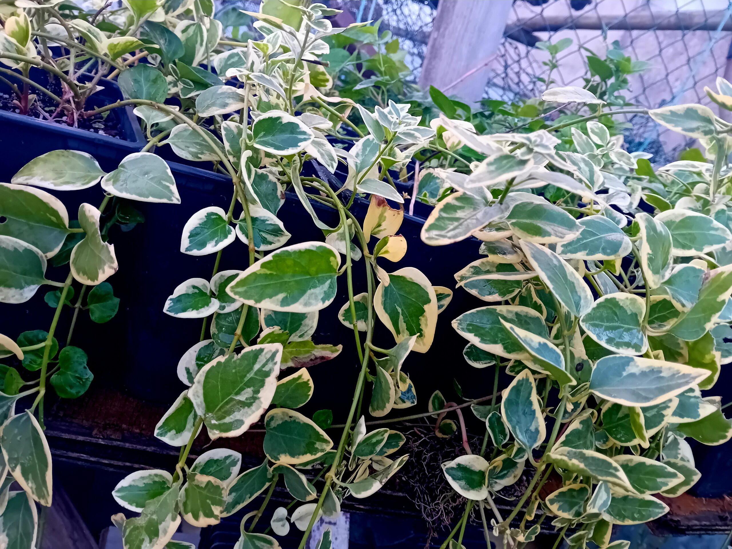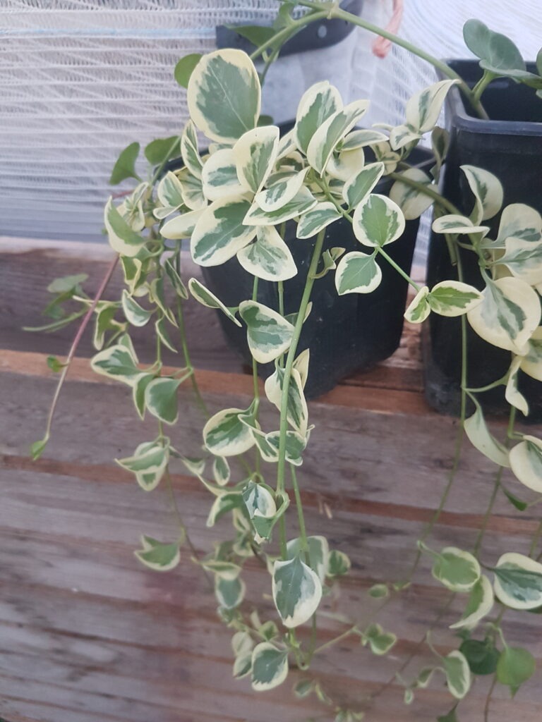 Vinca Maior folha variegada em vaso de 13cms de diametro. A vinca-pendente é uma planta herbácea e perene, de ramagem prostrada, tende a espalhar. Apresenta folhas muito ornamentais, principalmente na cultivar variegada, de folhas com margens branco-creme. Suas flores têm cinco pétalas, de coloração roxo-azulada com o centro branco. A floração pode se estender por todo o ano, mas é mais abundante na primavera e verão. Ocorrem ainda cultivares de flores de cor branca e roxo escuro. A vinca-pendente presta-se para a rápida formação de densas forrações em áreas semi-sombreadas, para controle da erosão e proteção de taludes por exemplo. Nestes ambientes sombreados, serve como forração. Em locais ensolarados, pode ser cultivada como florífera perene. É comum seu uso em jardineiras e vasos suspensos, e desta forma podemos apreciar melhor suas delicadas flores e folhagem pendente. A vinca maior folha variegada pode ser considerada invasora em algumas situações. Deve ser cultivada sob sol pleno ou meia-sombra, em solo leve, bem drenável, enriquecido com matéria orgânica e irrigado regularmente. Aprecia o clima ameno. Não tolera o calor intenso, períodos de estiagem, nem o pisoteio. Apresenta baixa necessidade de manutenção, apenas adubações anuais e podas para a renovação da folhagem. Multiplica-se por sementes, estaquia ou divisão da ramagem enraizada. Todas as nossas plantas sao cultivadas ao ar livre em modo de agricultura sustenta’vel e regenerativa.